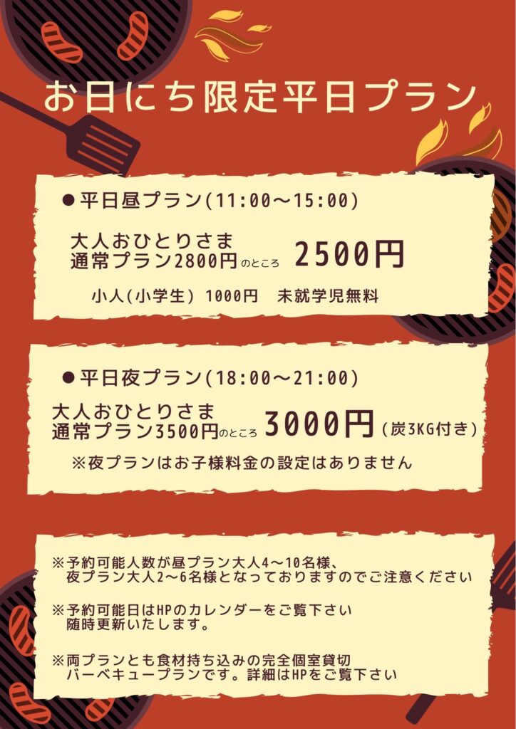 お得な平日プラン登場!! 2025 11/02 Uncategorized 2025年11月2日 平日プランのご案内基本土日のみの営業ですが平日プラン用意しました♪通常料金よりお得にご利用頂けます!お日にち限定となりますので空室状況はHPのカレンダーよりご確認ください。 Uncategorized よかったらシェアしてね! URLをコピーしました! URLをコピーしました! 夜プラン開始!! この記事を書いた人 Suita Barbecue Spazio コメント コメントする コメントをキャンセルコメント ※ 名前 ※ メール ※ サイト 次回のコメントで使用するためブラウザーに自分の名前、メールアドレス、サイトを保存する。 上に表示された文字を入力してください。 Δ
